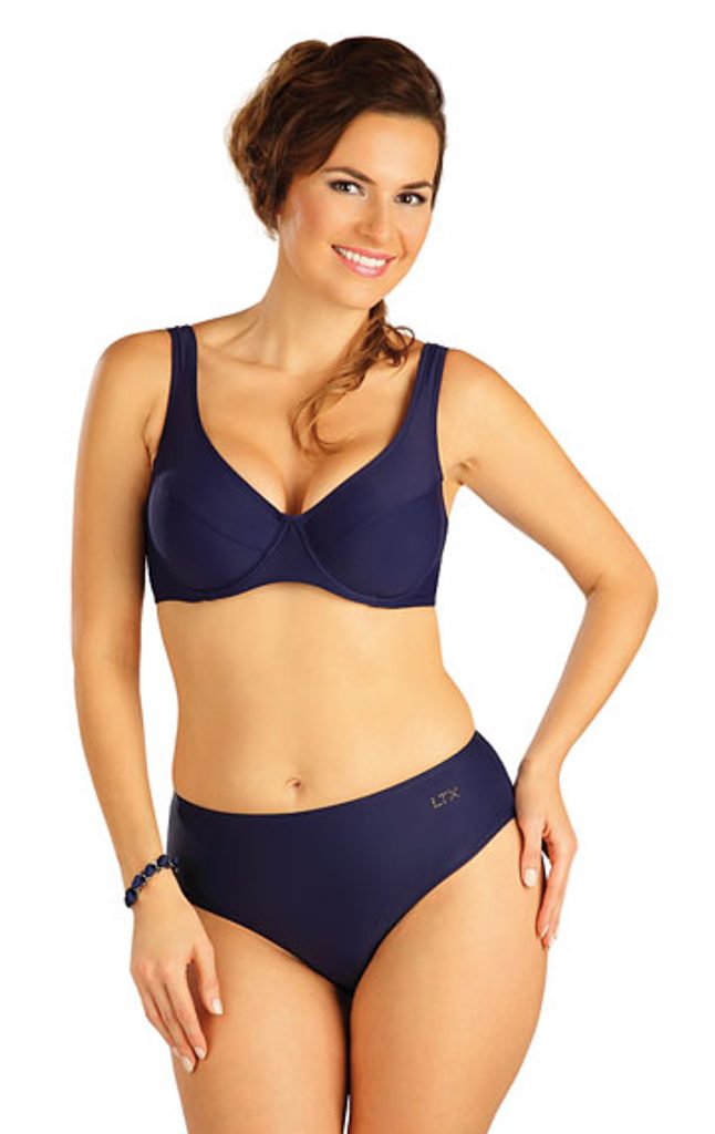 Plavková podprsenka s kosticemi. Podšitá. Zapínání na zádech. 80% Polyamid + 20% Elastan/ Lycra Xtra Life Tmavě modrá. 38, 40, 42, 44, 46, 48, 50