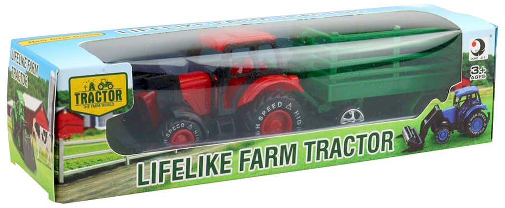 Traktor zemědělský 9cm set s vlečkou a nástrojem 4 druhy v krabici plast