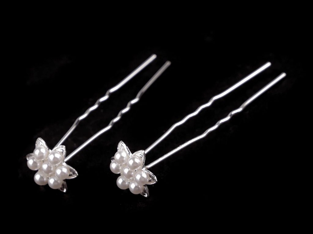 Elegantní perlové vlásenky ve tvaru květu každý účes vyzdvihnou nejméně o dvě třídy výš. Korálky se jemně lesknou, jsou zasazené do kovového lůžka. Vlásenky jsou z kvalitního, pevného kovu, ozdobí nejen společenské účesy, ale i nevěsty v jejich velký den.