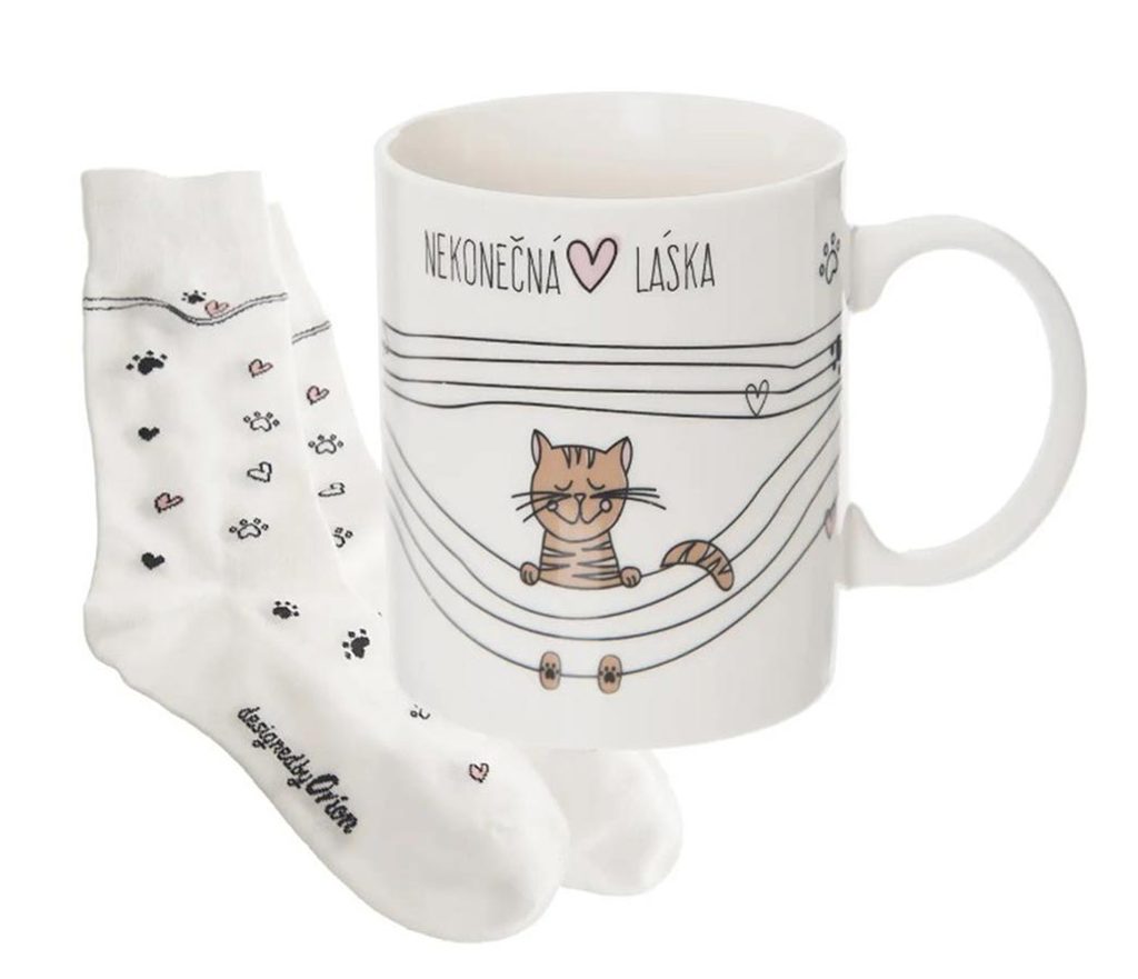 Hrnek ker. NEKONEČNÁ LÁSKA 0,35 l+ponožky kočka - dia 8 x 9,3 cm