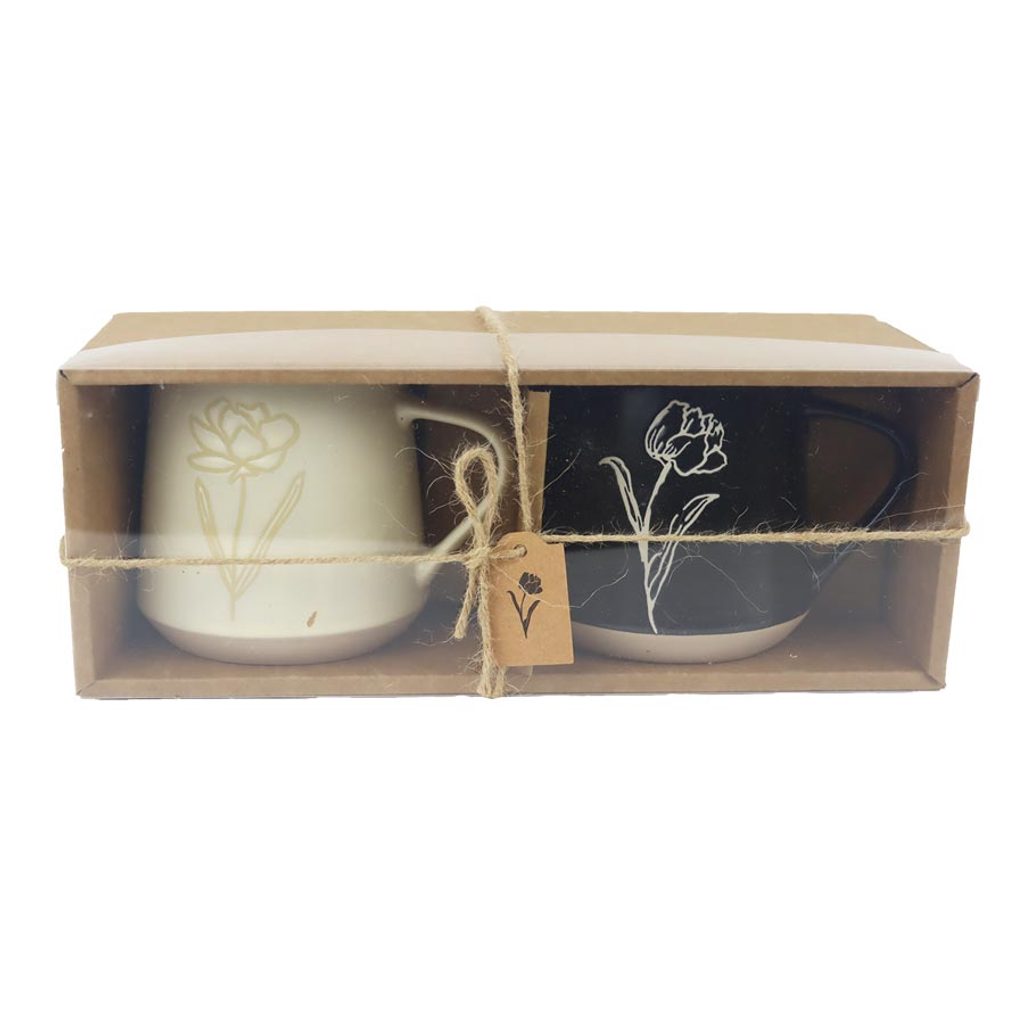 Sada hrníčků s kytkou mix. Sada obsahuje 2 hrníčky. Hrnek má objem 350 ml.- Rozměr: D7.5xH9.2xBD7.5cm