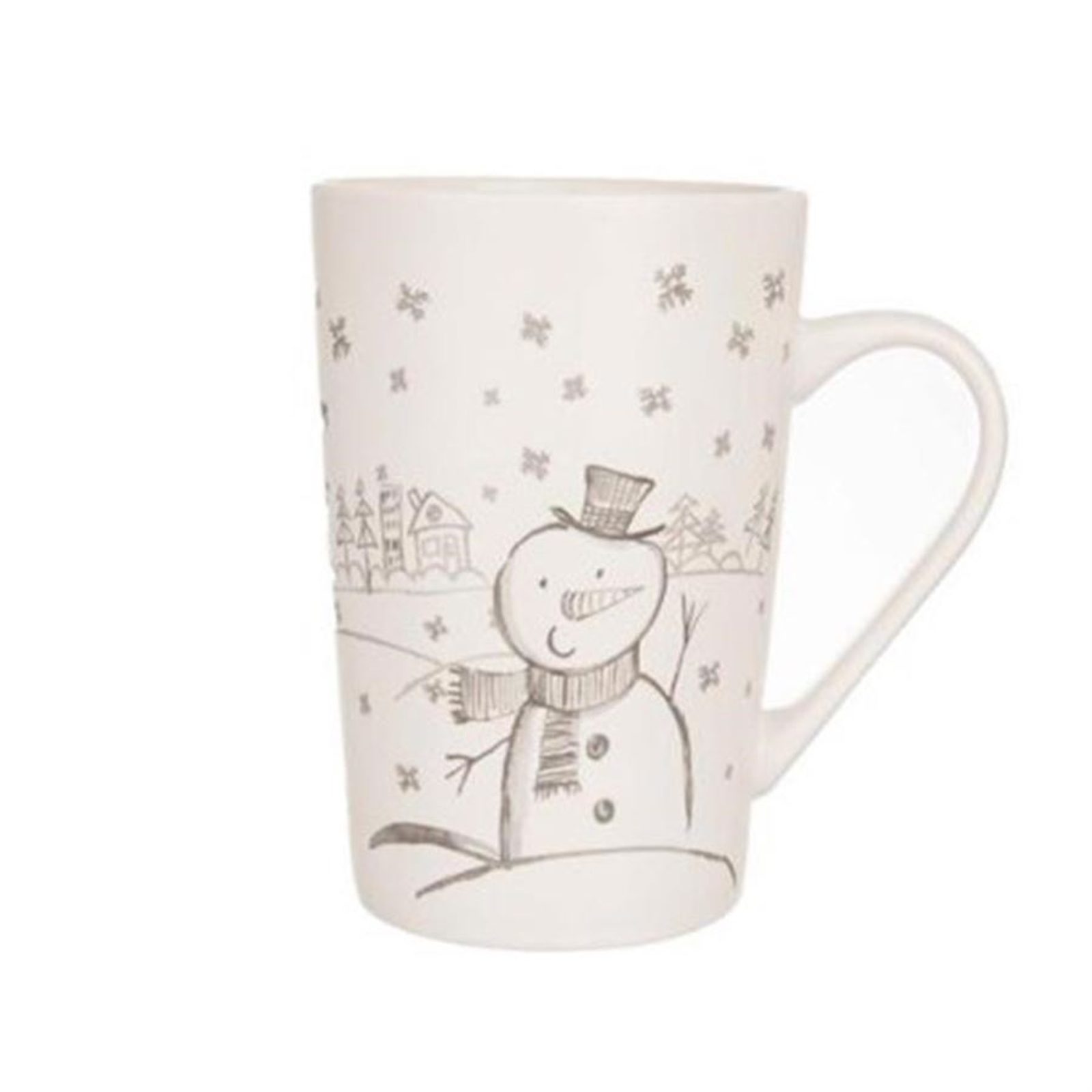 Hrnek s dekorem sněhuláka. Vhodný do myčky i MVT. Rozměry : průměr 8,5 cm, výška 12,5 cm, objem 0,47 l. Barva : kombinace bílá s šedou. Materiál : porcelán.