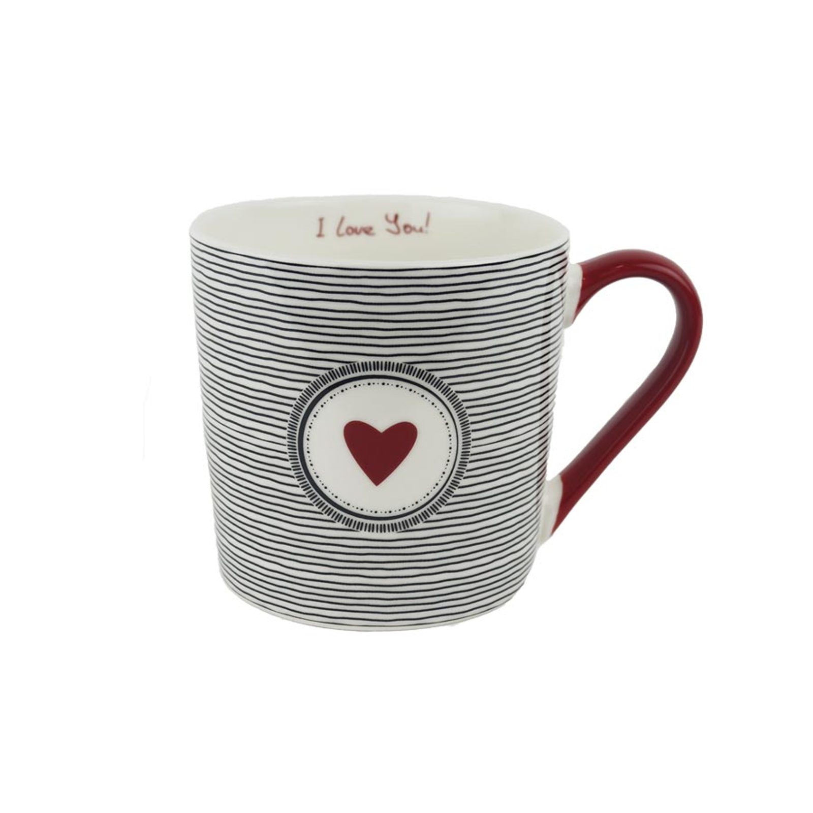 Porcelánový hrnek se srdíčkem. Rozměry : průměr 9,3 cm, výška 9 cm. Barva : kombinace bílá, černá, červená. Materiál : porcelán.Rozměr: dia 9,3 x 9…