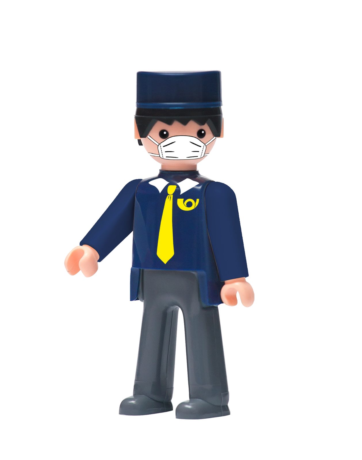EFKO 25094 - Igráček profese Pošťák s ústenkou na obličeji, ze speciální, limitované edice "Pomáhej s igráčkem", reflektující aktuální dění v souvislosti s šířením koronovairu Covid-19. Plastová figurka na
