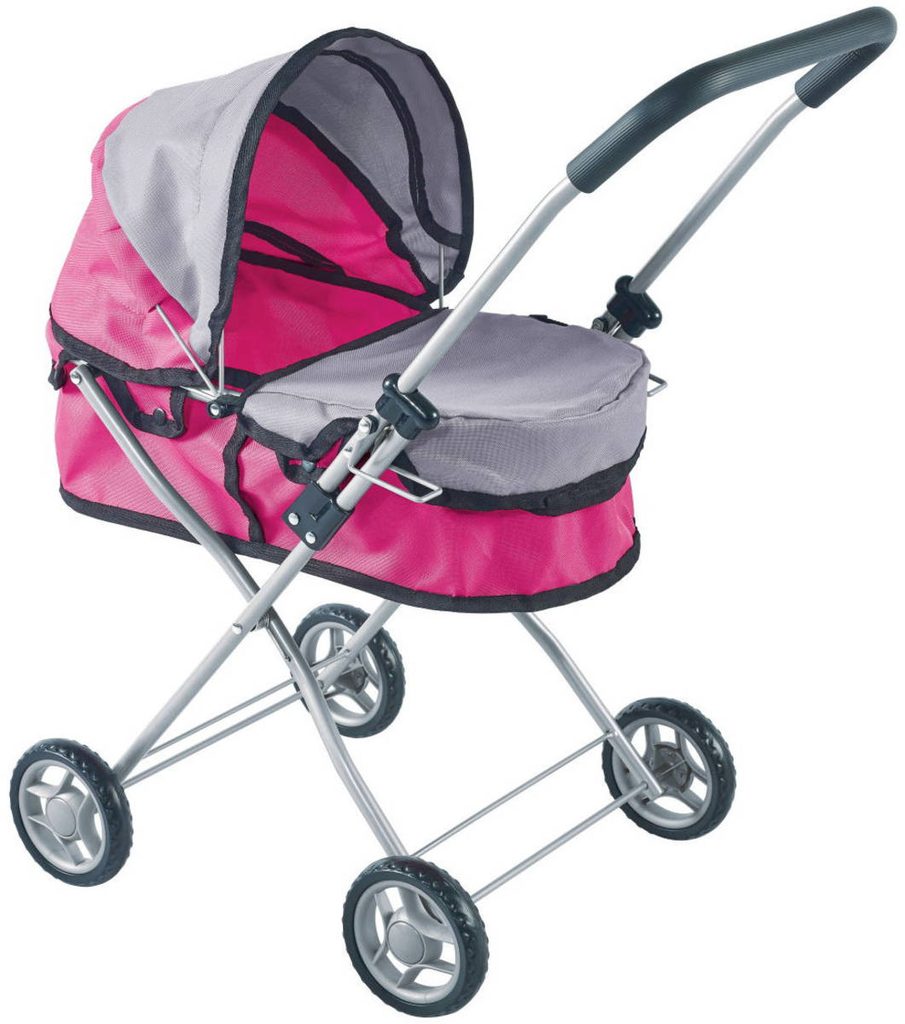 Kočárek hluboký růžovo-šedý pro panenku miminko do 43cm