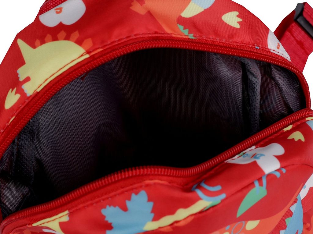 Malý textilní batůžek s motivem dinosaurů si děti zamilují na první pohled. Určitě je zaujmou i přečnívající tlapky na přední straně.Batoh má jednu hlavní kapsu, která se uzavírá na zip. Uvnitř má batoh podšívku.