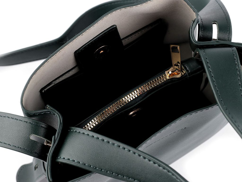 Módní kabelka se díky svému elegantnímu vzhledu stane skvělou společnicí nejen při společenských událostech, ale i při každodenním nošení. Díky syntetického materiálu, který vypadá jako kůže, má kabelka punc kvality i vkusné originality.Vnitřní prostor má rozdělený na 2 kapsy s magnetickým zapínáním. Mezi nimi je přepážka, ve které je kapsa na zip. Uvnitř kabelky je i malá plochá kapsa. Součástí kabelky je ucho do ruky a odepínací nastavitelný popruh.