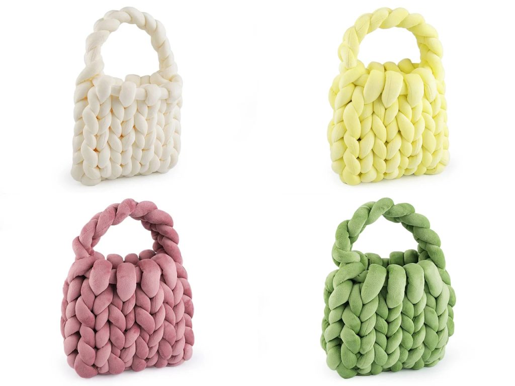 Stylová designová kabelka na první pohled zaujme svou objemnou strukturou a tvarem. Je ručně upletená z velvetové příze, je velice příjemná na dotek. Má ucho na nošení v ruce, bude perfektním doplňkem ke všem vašim outfitům. Kabelka je jedinečná, pokud milujete stylovou módu, bude pro vás ta pravá.- Materiál: polyester