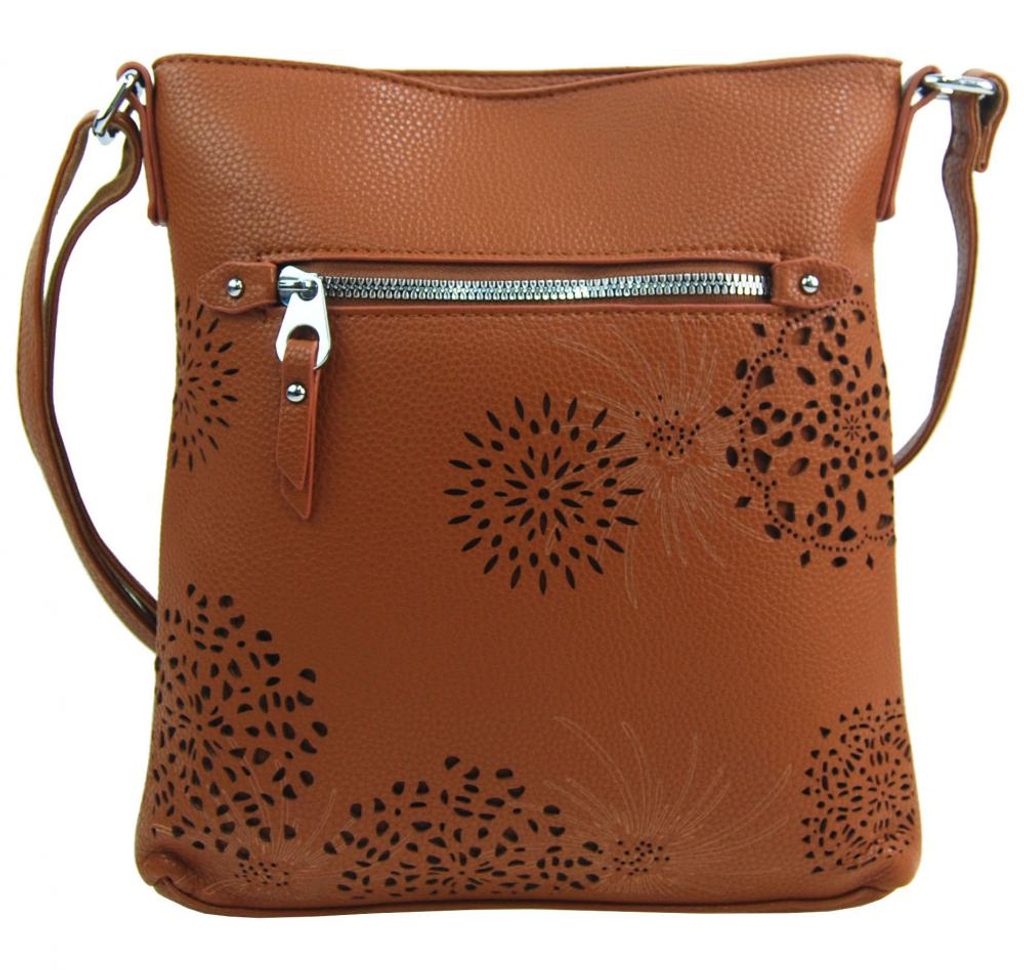 Crossbody dámská kabelka v květovaném designu hnědá 5432-BB
