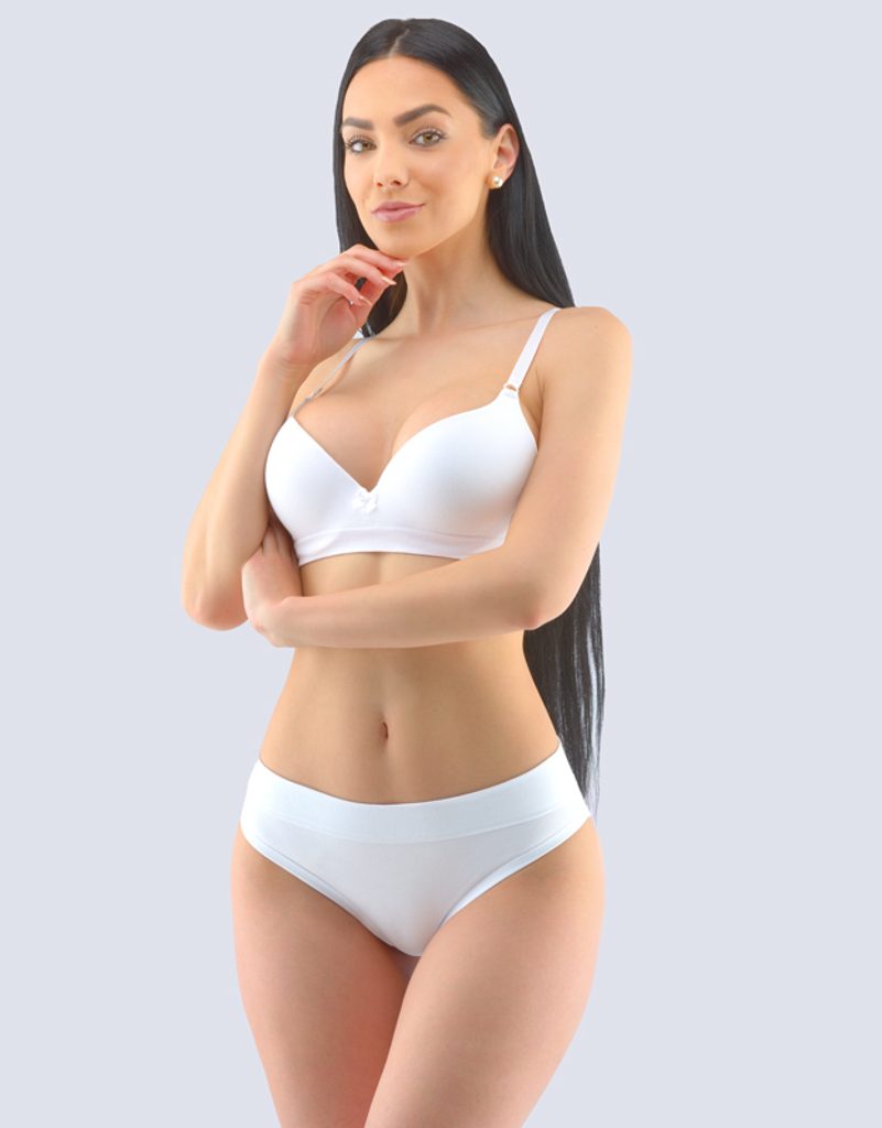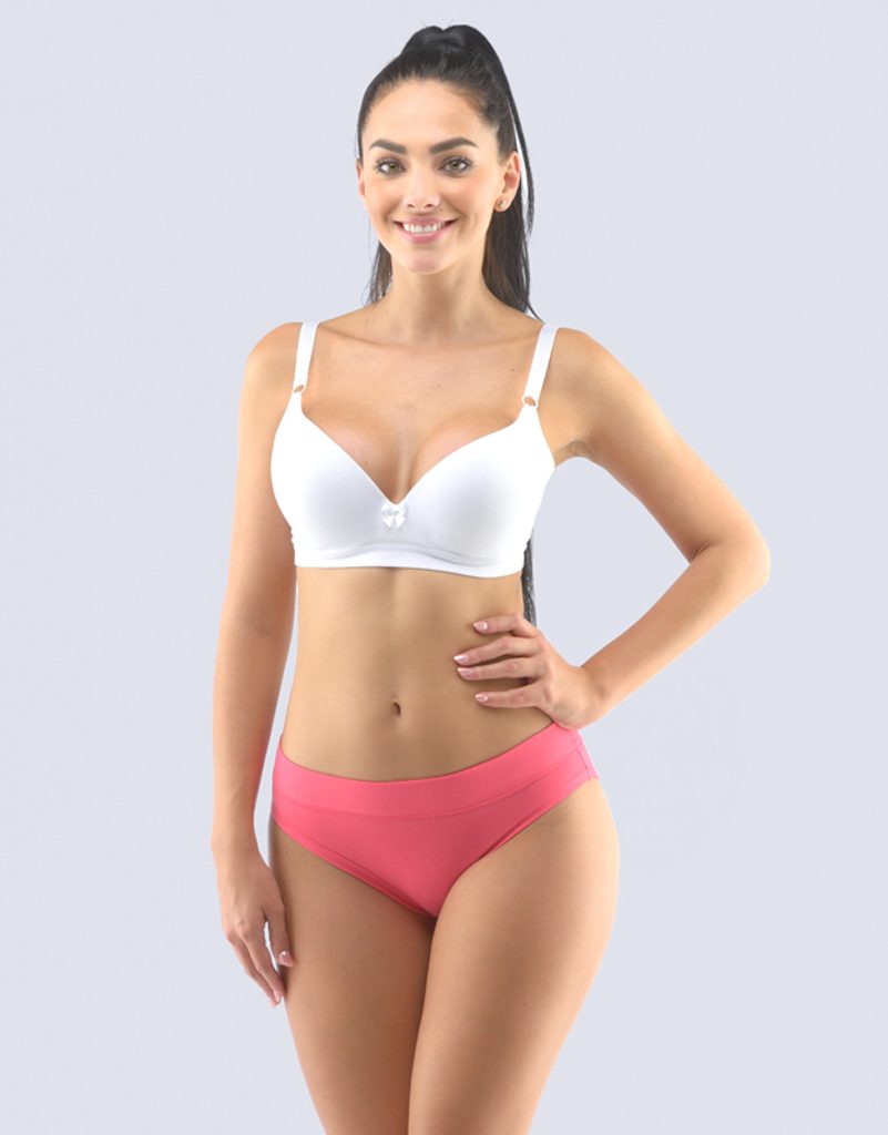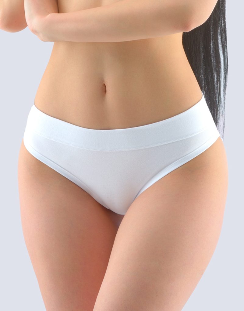 kalhotky bokové se širokým bokem, širší bok, šité, jednobarevné značky GINA, kód 16152. Složení: 92% Bavlna 8% ElastanBokové kalhotky se širším bokem, bokovky, a se širším pasovým lemem, dámské šité prádlo. Pasový kraj je začištěný širším lemem ze stejného materiálu. Nohavičky jsou začištěné úzkým lemem ze stejného materiálu. Kalhotky jsou jednobarevné.