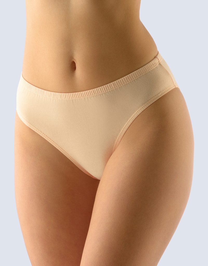 kalhotky klasické, širší bok, šité, jednobarevné značky GINA, kód 10206. Složení: 92% Bavlna 8% ElastanKalhotky klasického střihu, dámské šité prádlo. V pasovém kraji je zašitá úzká pruženka. V nohavičkách je zašitá úzká pruženka. Kalhotky jsou jednobarevné.Materiál je vyroben z bavlny, která je doplněna elastanem. Úplet je vhodný pro všechny, kteří hledají přírodní materiály. Elastan přidává materiálu pružnost a zlepšuje jeho tvarovou stálost. Prádlo z tohoto materiálu je vhodné pro každodenní nošení..