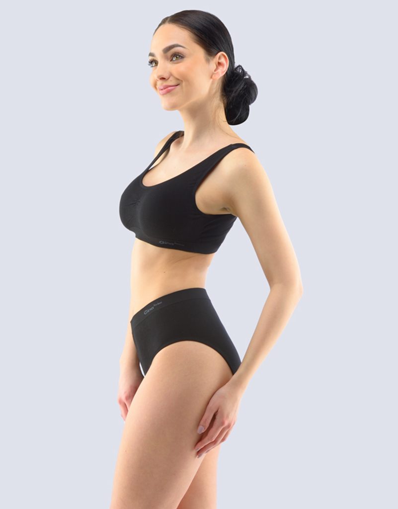 kalhotky mama, větší velikosti, bezešvé, klasické, jednobarevné značky GINA, kód 01001. Složení: 70% Viskóza ( Bambus ) 22% Polyamid 8% Elastan. Kolekce: Bamboo PureLine- Potisk: ne