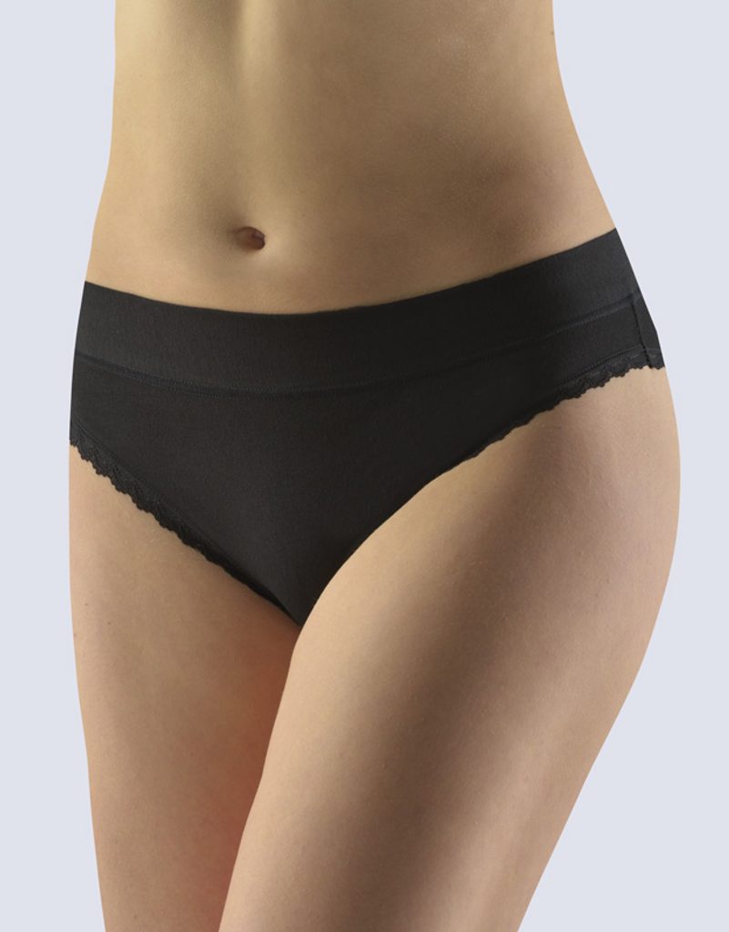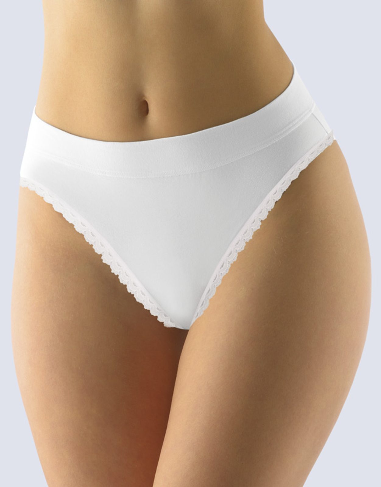 kalhotky klasické s úzkým bokem, úzký bok, šité, s krajkou, jednobarevné značky GINA, kód 10238. Složení: 92% Bavlna 8% Elastan.
