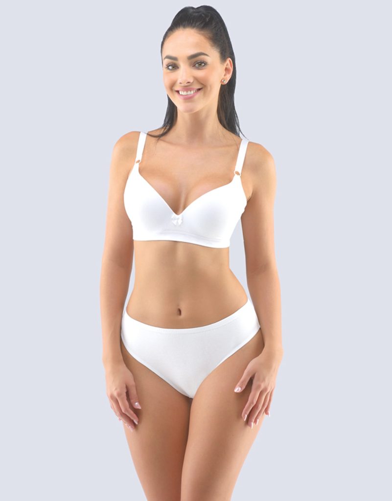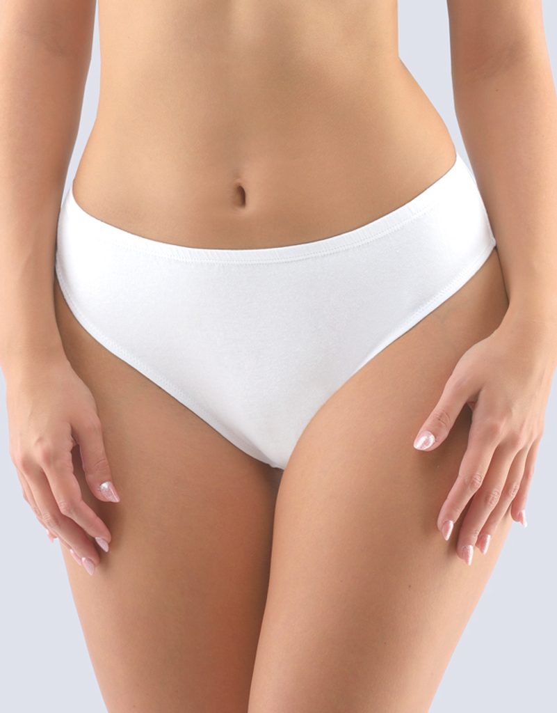 kalhotky klasické, širší bok, šité, jednobarevné značky GINA, kód 10283. Složení: 100% BavlnaKalhotky klasického střihu, dámské šité prádlo. V pasovém kraji je zašitá úzká pruženka. V nohavičkách je zašitá úzká pruženka. Kalhotky jsou jednobarevné.