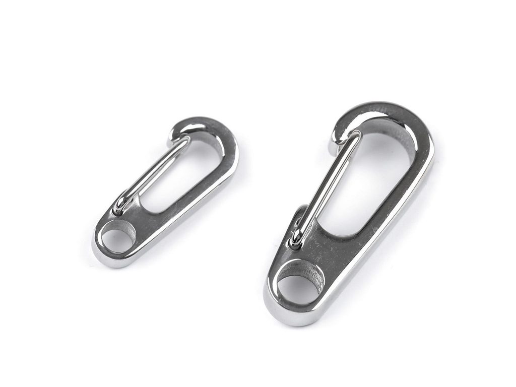 Kovová karabina je vyrobená z kvalitní nerezové oceli. Je masivní, pevná, vhodná k výrobě klíčenek, různých přívěsků na tašky, kabelky či batohy.Karabina č.1 má kulatý průvlek 3 mm.