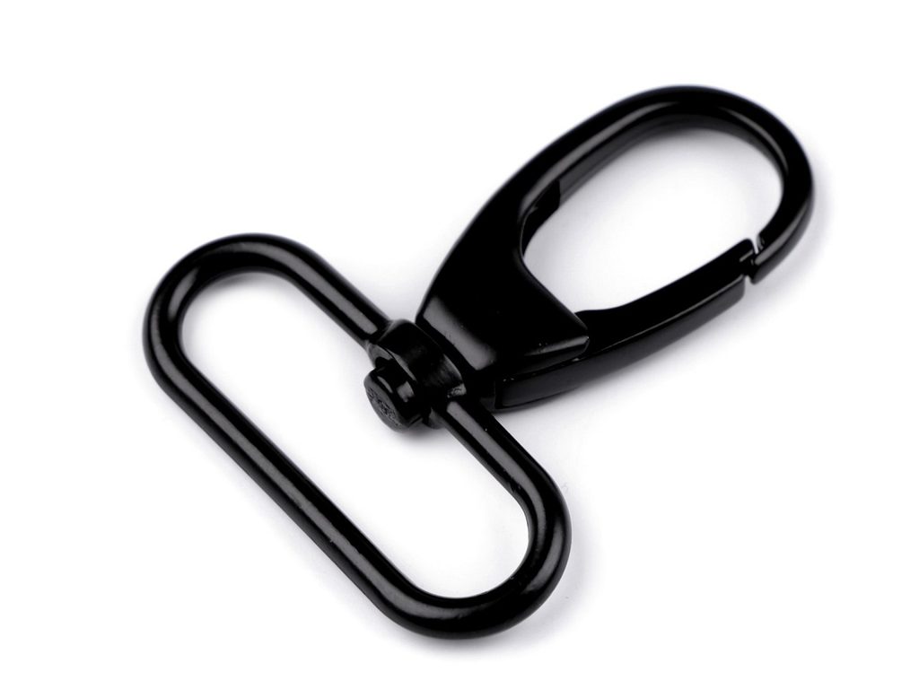 Kovová karabina je vhodná na upevnění popruhů k taškám a kabelkám. Můžete ji použít také na výrobu vodítek pro psy. Je otočná.Karabina je vhodná na popruh o šíři 35 - 38 mm.