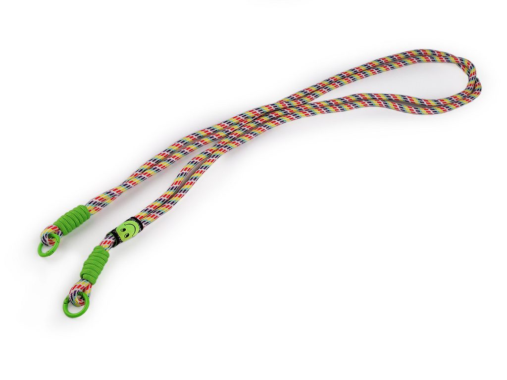Dlouhá šňůra s karabinami přináší originalitu a funkčnost v jednom. Díky barevnému a hravému provedení je nejen užitečným, ale i módním prvkem. Karabiny na obou koncích umožňují snadné připevnění a odpojení, což velice usnadní manipulaci. Je ideální pro zavěšení mobilu, klíčů, ale třeba i kabelky a tašky. Je vhodná pro každodenní nošení, do práce, na sportovní aktivity, festivaly či cestování. Na obou koncích má kulaté otevírací karabiny.- Materiál: polyester, kov