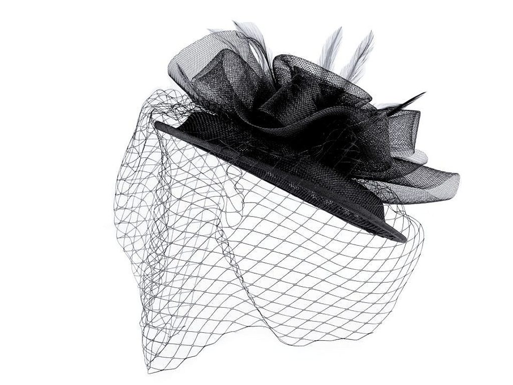 Elegantní koktejlový klobouček s francouzským závojem, zakrývajícím část obličeje, si oblíbí dámy, které chtějí být v popředí společenského dění. Hodí se pro slavnostní i smuteční příležitosti, svatby, plesy, pohřby, do divadla nebo dostihy.Je vyrobený z modistických sítěk, jenž jsou vytvarované do květu. Je dozdobený peříčky.