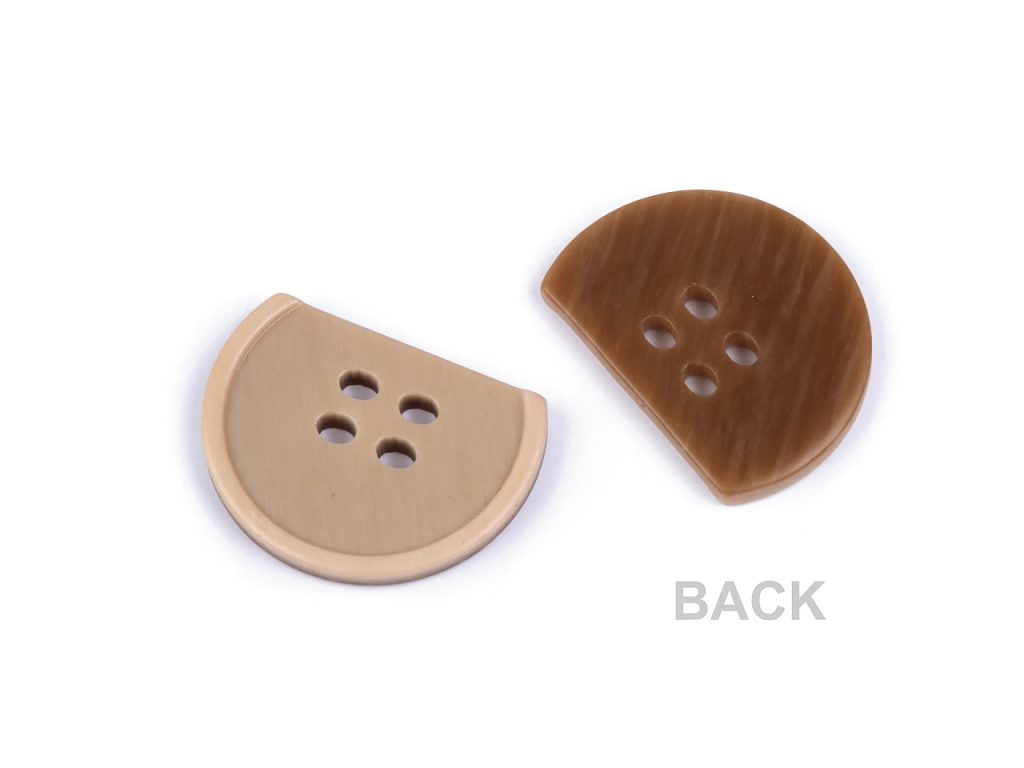 Čtyřdírkové knoflíky vynikají efektním půleným designem. Můžete jimi zkrášlit kabátky, saka, vesty, šaty, halenky i svetry.