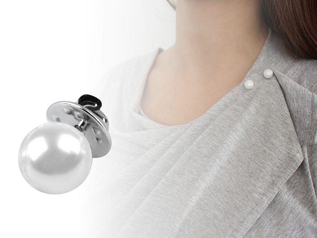 Malá elegantní perla dodá půvab vašim oděvům i módním doplňkům. Má poutavý perleťový lesk. Hodí se jako mini brož na ozdobení límečku nebo ji rovnou můžete použít místo knoflíčku. Krásně ozdobí klopu kabátu, kardiganu, vestu či svetr. Je vhodná i k připnutí na čepici, čelenku, klobouk, kabelku, batůžek apod. Má jednoduché jednobodové zapínání.