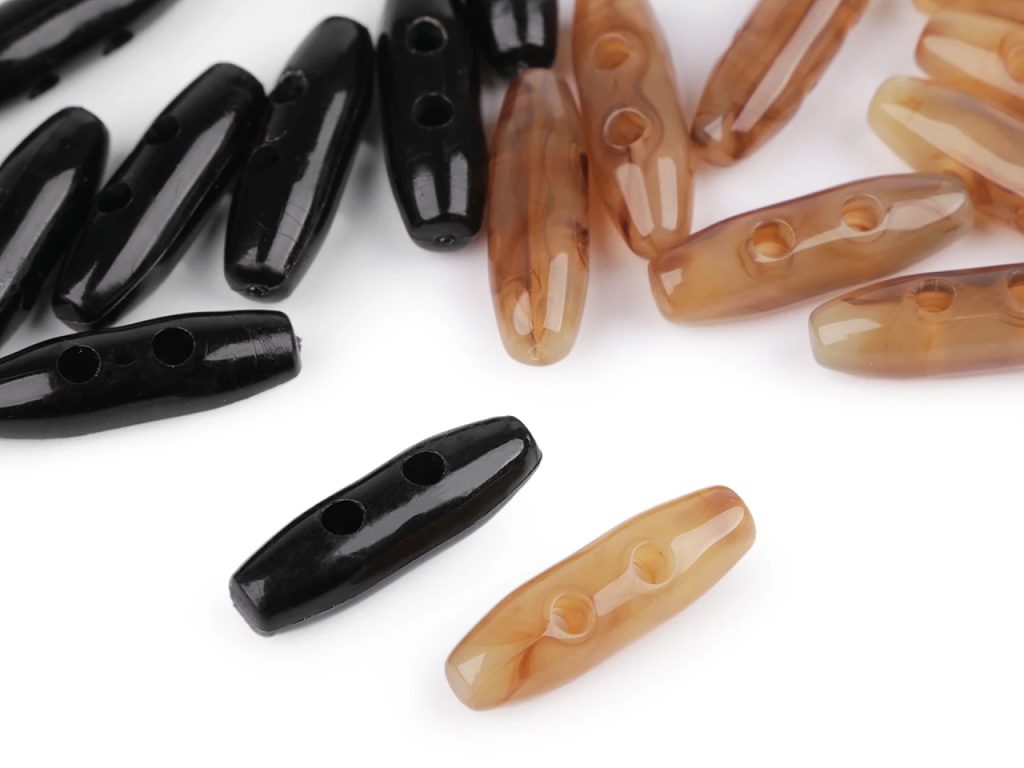 Plastový knoflík ve tvaru olivy využijete na kabátky, vesty, svetříky, mikiny apod. Můžete ho našít i na tašky či batohy. Díky své velikosti se hodí také na dětské oblečení a doplňky.