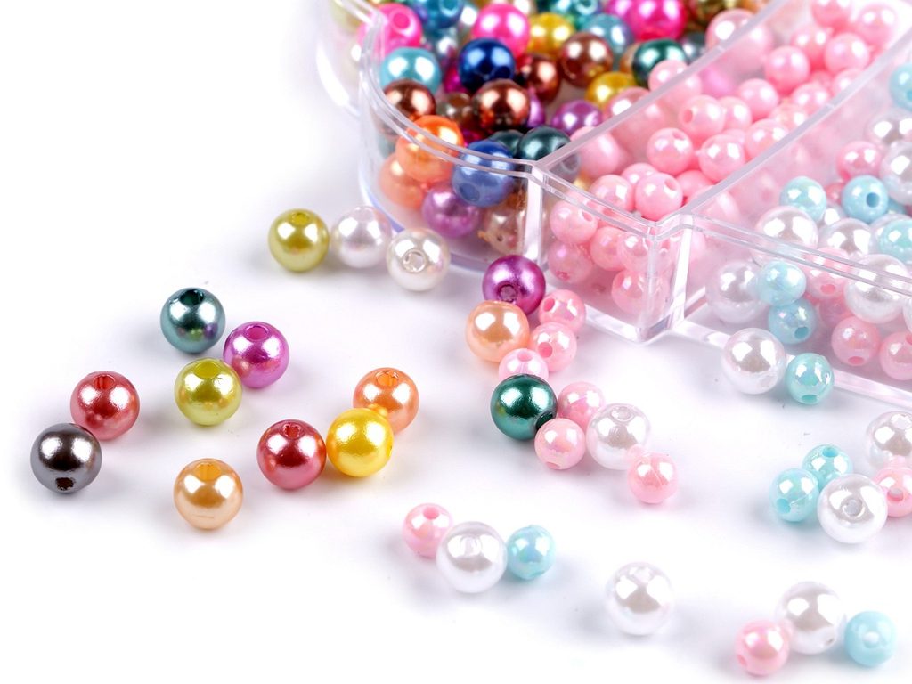 Plastový box ve tvaru zmrzliny obsahuje barevný mix plastových perel. Korálky mají blýskavý lesk jako pravé perly, sada bude bezvadným dárkem pro dívky, které si mohou navléknout náramky a náhrdelníky.