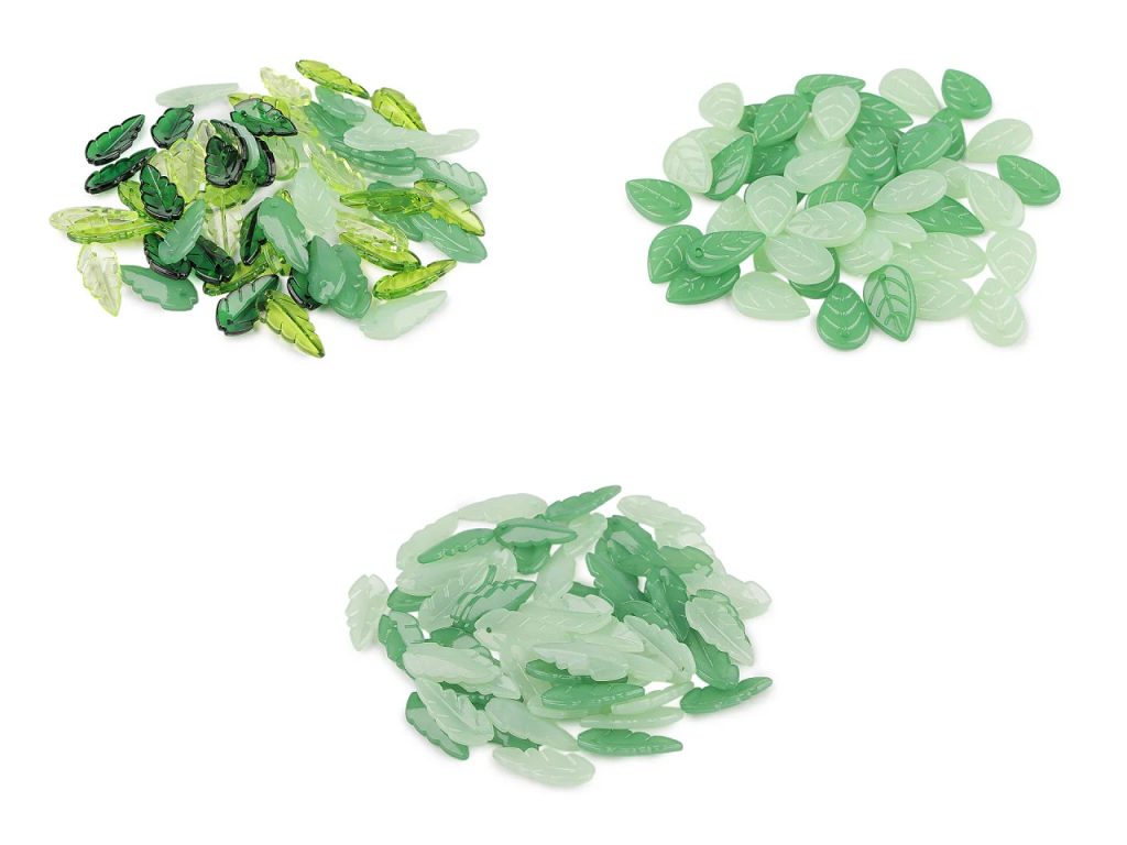 Půvabné transparentní korálky ve tvaru lístků, nadchnou především korálkářky, které rády tvoří květinové šperky. V balení najdou efektní směs různých barev, které zaujmou na první pohled. Jsou velice lehounké, nemusíte se bát ani objemných ketlovaných hroznů. Využívají se na tvoření stromů života, jsou vhodné i pro floristy na dozdobení různých dekorací jako jsou věnce a girlandy.