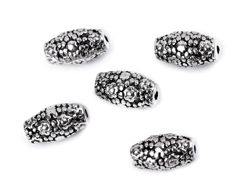 Oválný kovový korálek s malými květy můžete využít jako zajímavý a oživující prvek.