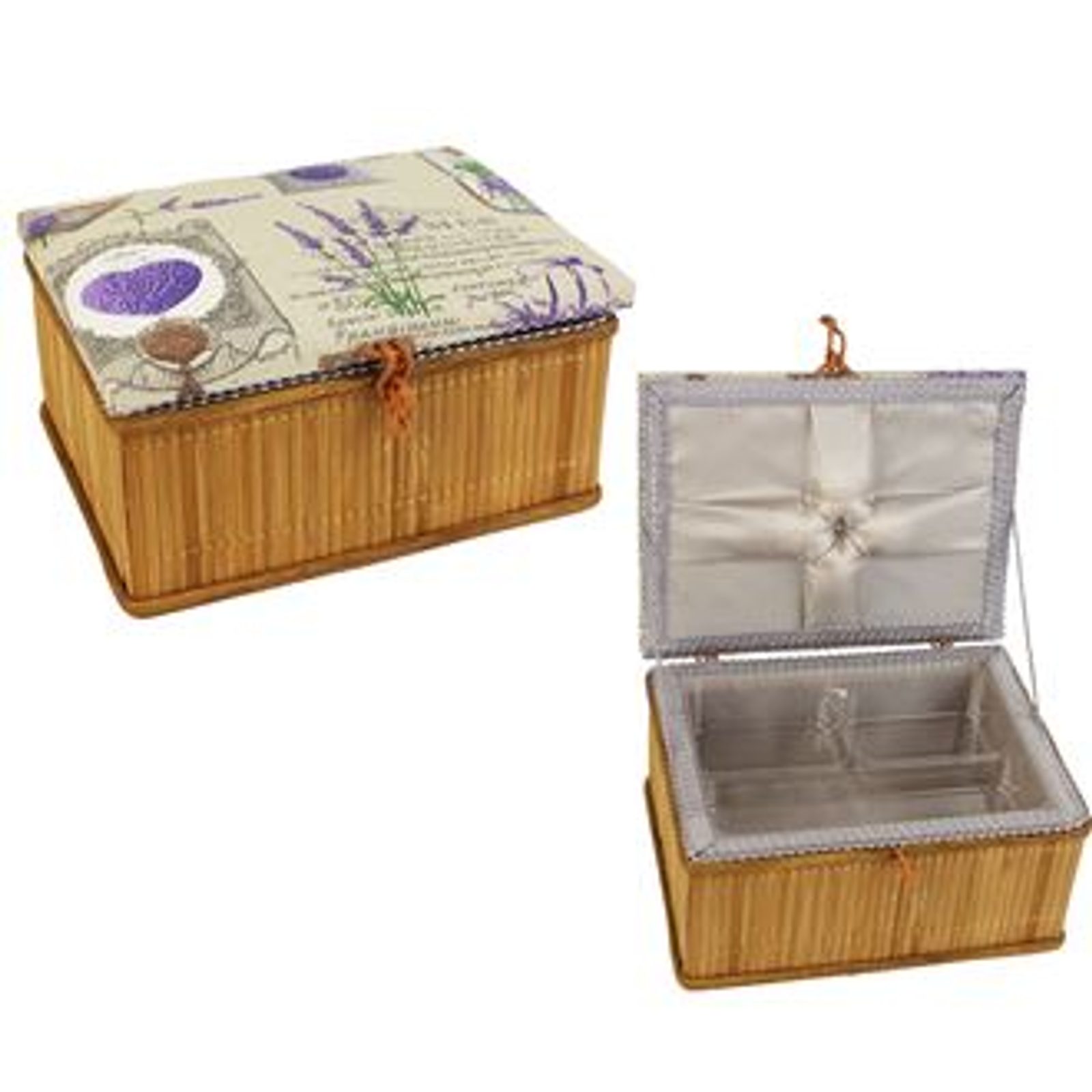 Štípaný bambus, víko-nábytková dekorační látka, kazeta je včetně plastové přihrádky.