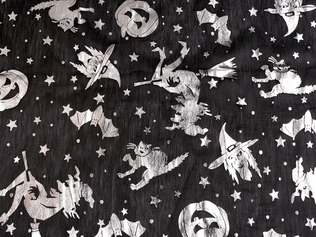 Karnevalový plášť má efektní metalický potisk. Promění vaše dítko v čaroděje, ježibabu, kouzelníka a podobné strašidelné postavy. Váže se pomocí šňůrek. Materiál je poloprůhledný.
