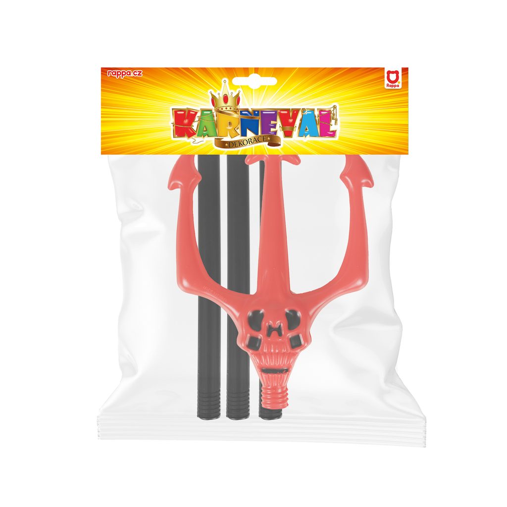 Čertovské vidle jsou nepostradatelným doplňkem k čertovské masce. Vhodné i na Halloween, maškarní ples nebo jinou párty. Tento trojzubec se skládá ze čtyř částí a díky tomu je dobře skladný. Délka vidlí po sestavení je 104 cm.