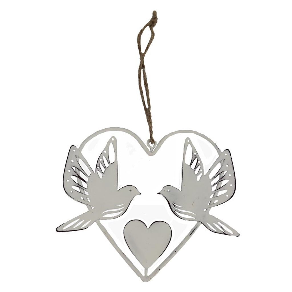 Dekorační srdce k zavěšení. Rozměry : 12 × 10,5 cm, tloušťka 0,3 cm. Barva : bílá. Materiál : kov.- Rozměr: 12 × 10,5 × 0,3 cm