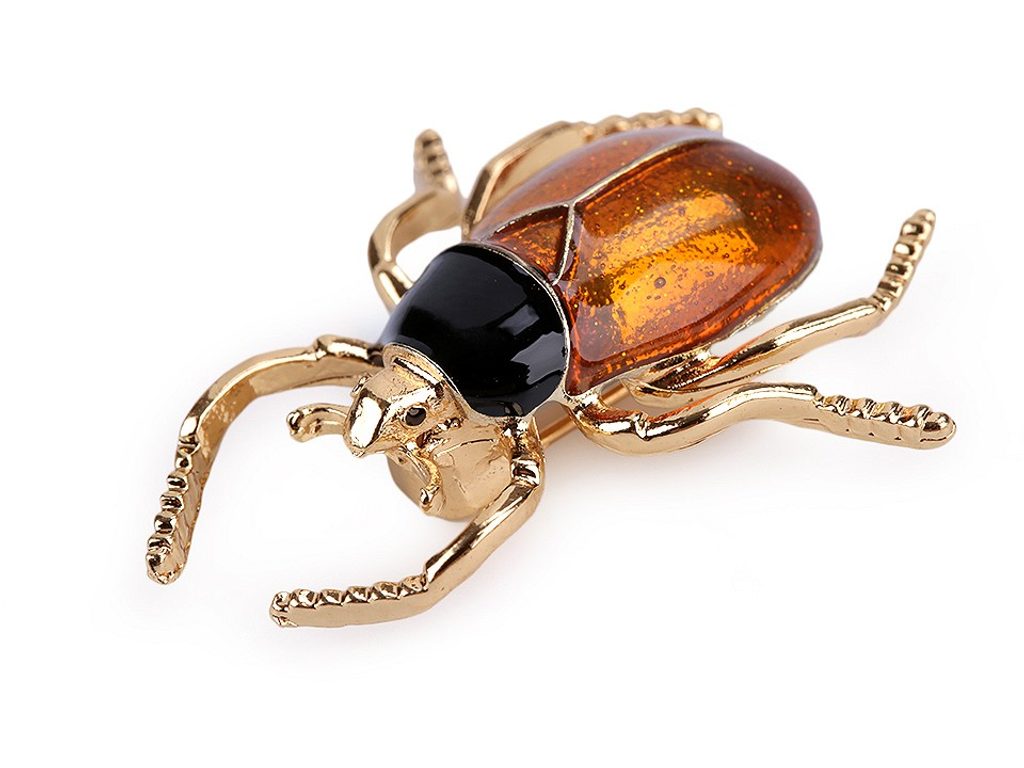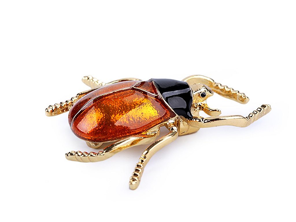Brož brouk s barevným smaltem je originálním módním kouskem, který můžete využít na běžné nošení i na společenské události - návštěvy divadel, oslavy apod. Z rubu má brož zavírací špendlík. Můžete ji nosit nejen na oděvech, hodí se i k ozdobení klobouků, tašky či sepnutí šátku.Brož je na plastové kartě, kterou lze zavěsit na prodejní stojany.
