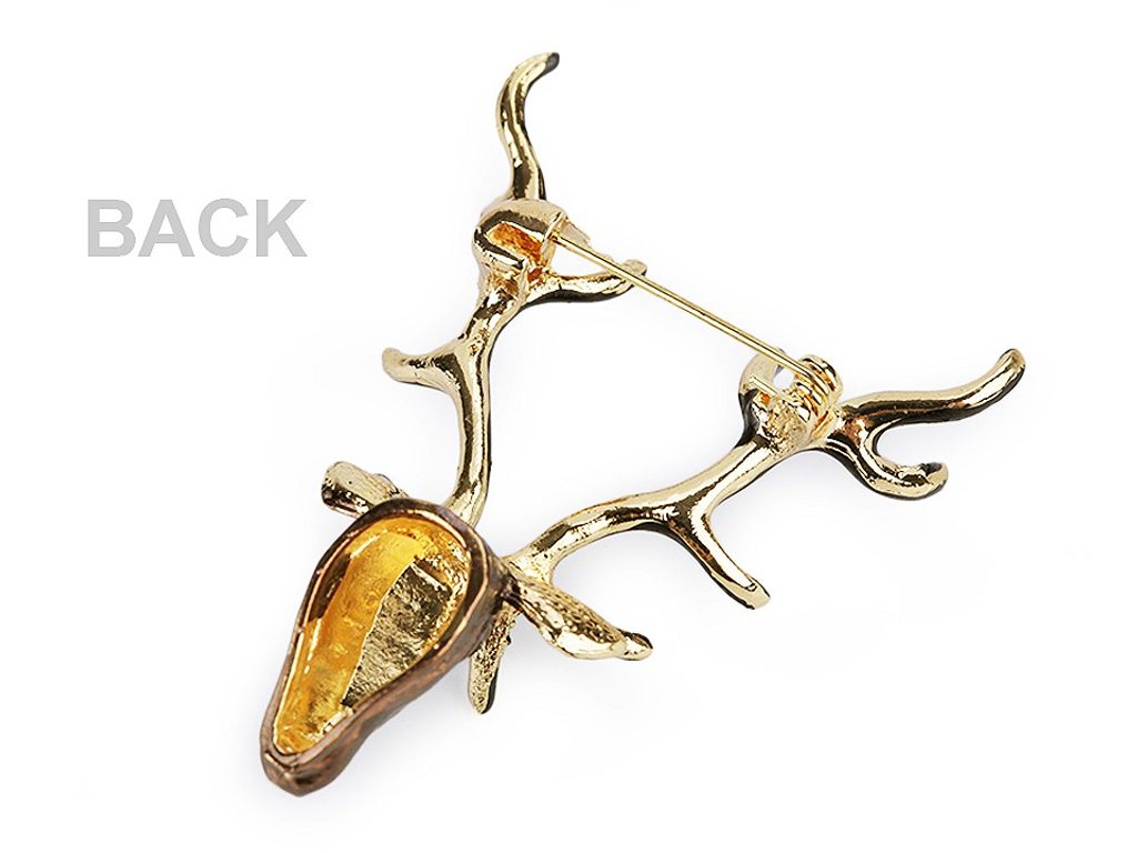 Unisex brož s jelení hlavou s velkými parohy nadchne jak dámy, tak i každého myslivce. Bude vypadat skvěle na klopě pánského saka i na dámském kabátě či svetru.Brož má vzadu brožový špendlík. Je na plastové kartě, která se dá zavěsit na prodejní stojany.