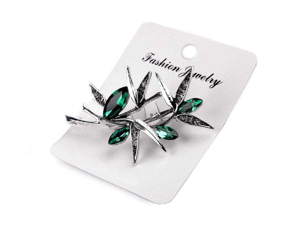 Elegantní brož s motivem rostlin bude dokonalým doplňkem vašeho oděvu. Díky broušeným kamínkům se efektně třpytí, skvěle dozdobí halenky, šaty, saka, svetry, kabáty, kabelky i čepice. Hodí se i na ozdobné sepnutí šátku.Brož má vzadu brožový špendlík. Je na plastové kartě, která se dá zavěsit na prodejní stojany.