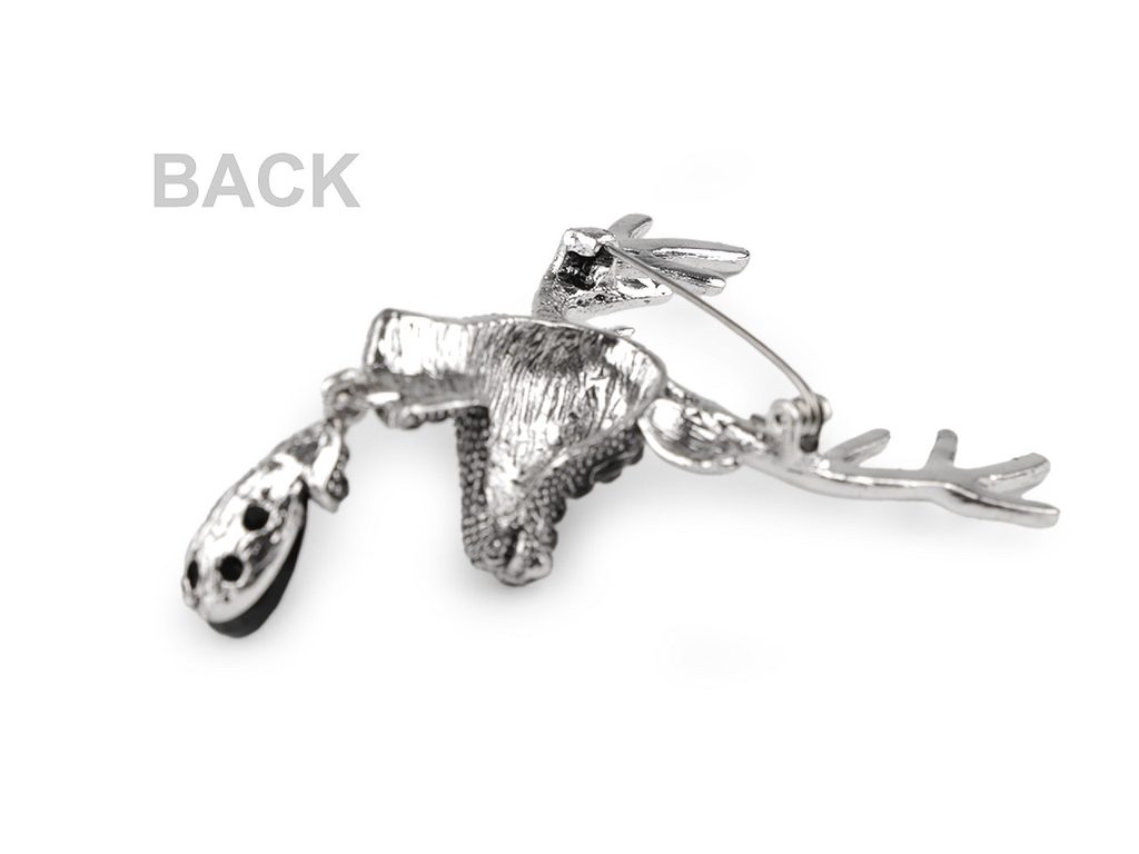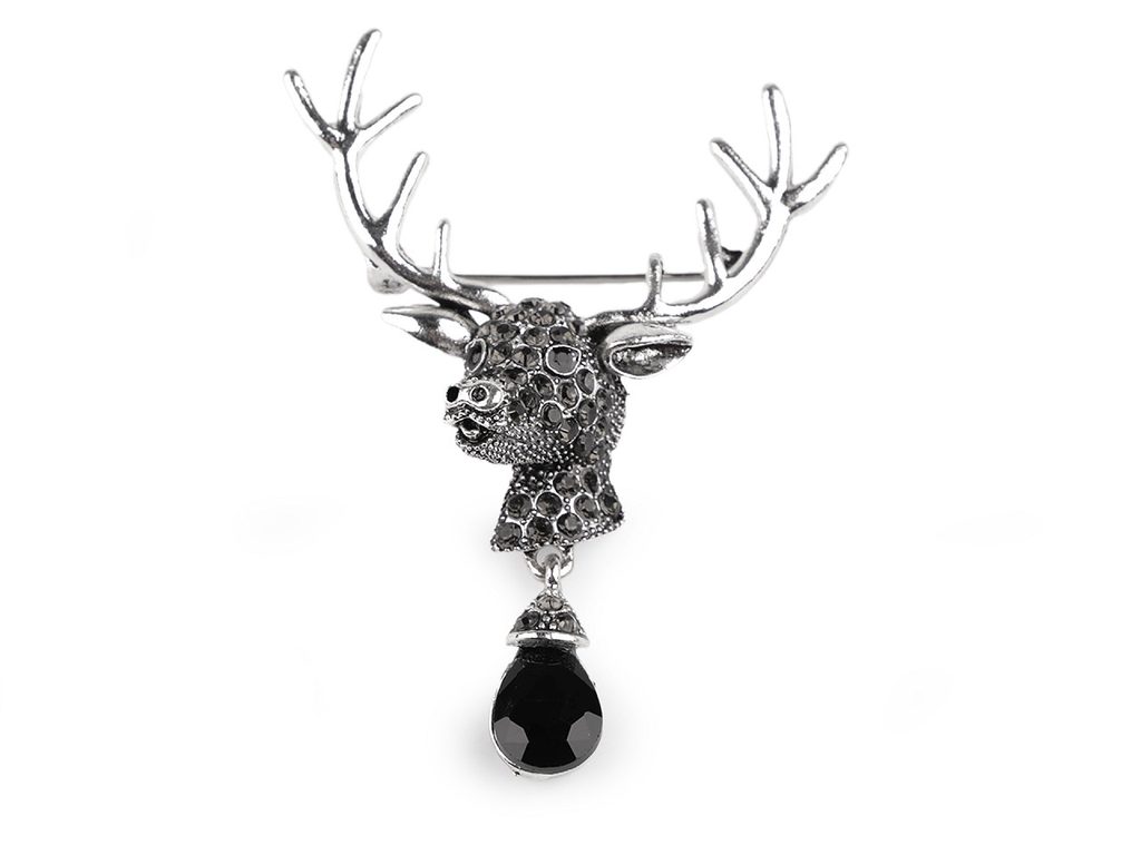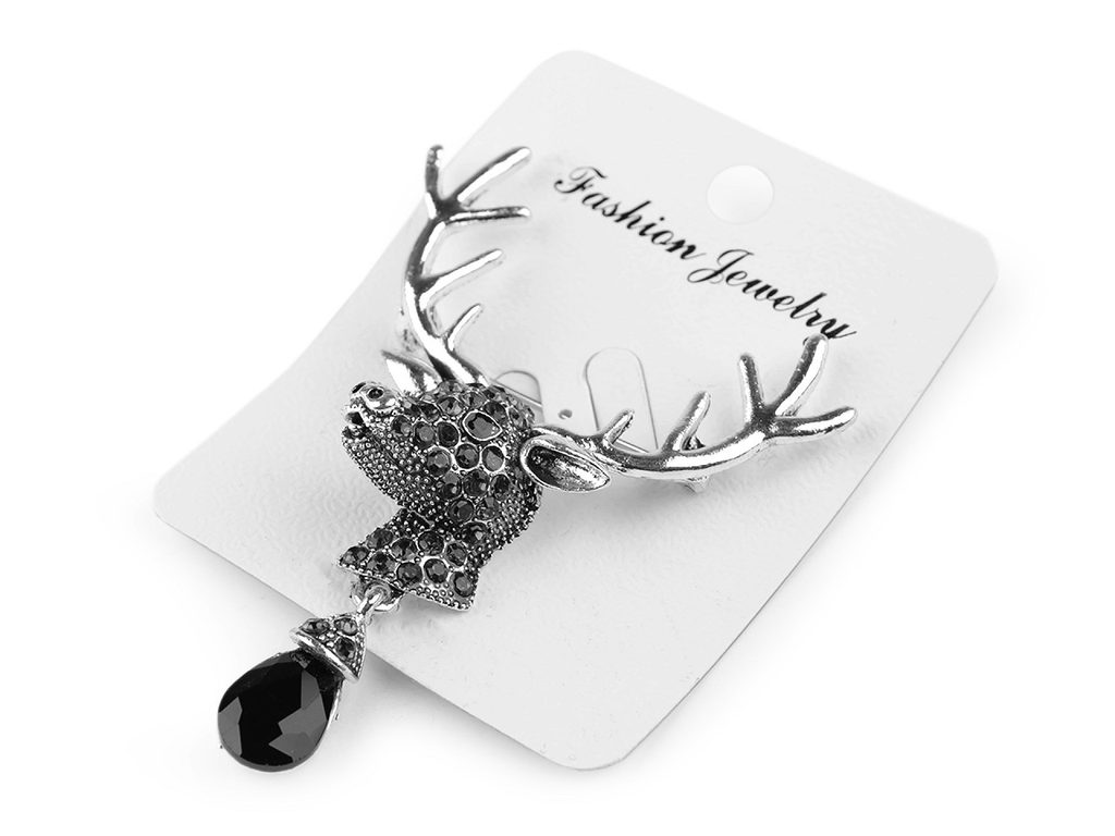 Elegantní brož s jelení hlavou a broušeným kamenem zaujme na první pohled. Je osázená broušenými kamínky, poutavě se leskne. Skvěle dozdobí saka, svetry, kabelky či čepice. Hodí se i na ozdobné sepnutí šátku.Brož má vzadu brožový špendlík. Je na plastové kartě, která se dá zavěsit na prodejní stojany.