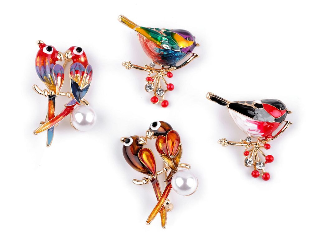 Brož ptáčků s barevným smaltem vás uchvátí svou pestrou hrou barev. Je velice milá a elegantní, můžete ji využít na běžné nošení i na společenské události - návštěvy divadel, oslavy apod. Z rubu má brožový špendlík. Můžete ji nosit nejen na oděvech, hodí se i k ozdobení klobouků, tašky či sepnutí šátku.Brože č.1 a 2 - papoušci jsou ozdobené perlou.