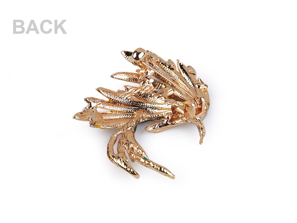 Elegantní brož rajky je okouzlujícím módním doplňkem, který okamžitě přitáhne pozornost svým jedinečným designem. Je osázená třpytivými, broušenými kamínkya dozdobená barevným smaltem s nepatrným náznakem glitrů. Hodí jak pro každodenní nošení, tak na speciální příležitosti. Ze zadní strany má brožový špendlík.Efektně působí nejen na oděvech, ale je vhodná i k ozdobení klobouků, tašky či sepnutí šátku.