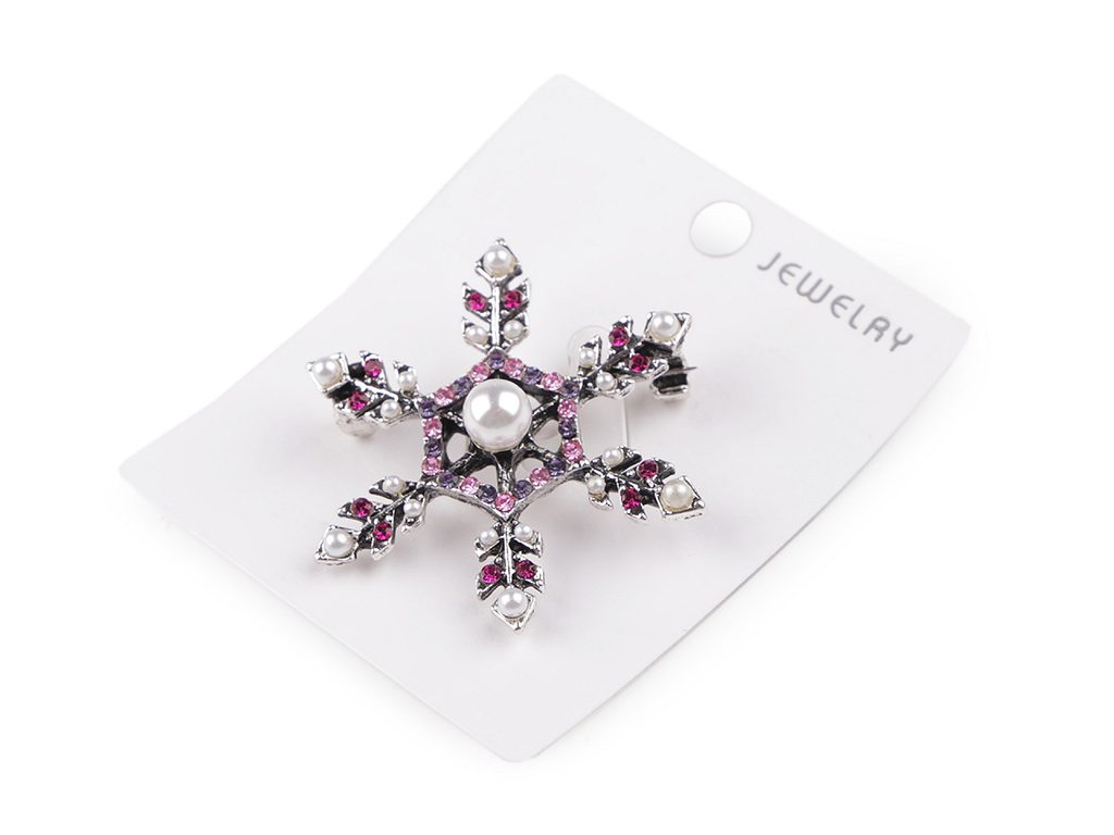 Brož sněhová vločka je osázená broušenými kamínky s efektním třpytem. Její elegance vynikne na zimní čepici, svetru, šatech i halence. Můžete ji nosit na oděvech, kloboucích, taškách či s ní můžete sepnout šálu.Na zadní straně má brožový špendlík.