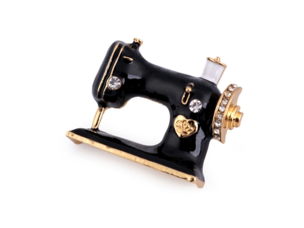 Smaltovaná brož šicí stroj bude skvělým dárkem nejen pro švadlenku. Ocení ji i ženy, které milují vintage styl. Je decentně ozdobená broušenými kamínky, díky kterým se jemně třpytí. Z rubu má zavírací špendlík s pojistkou proti otevření.