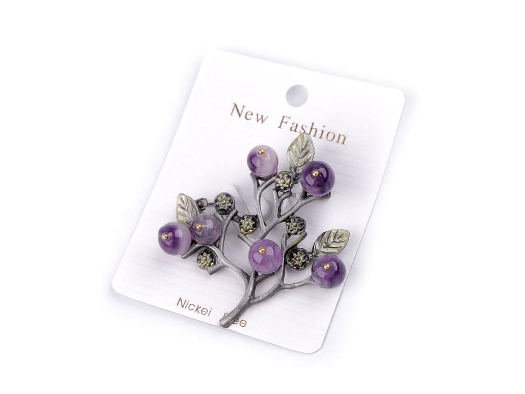 Brož větvička s bobulemi ze syntetických minerálů