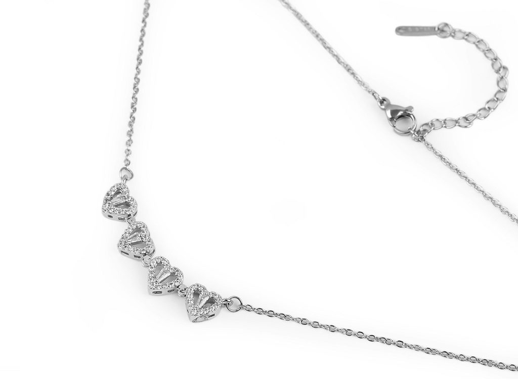 Náhrdelník z nerezové oceli s broušenými kamínky srdce