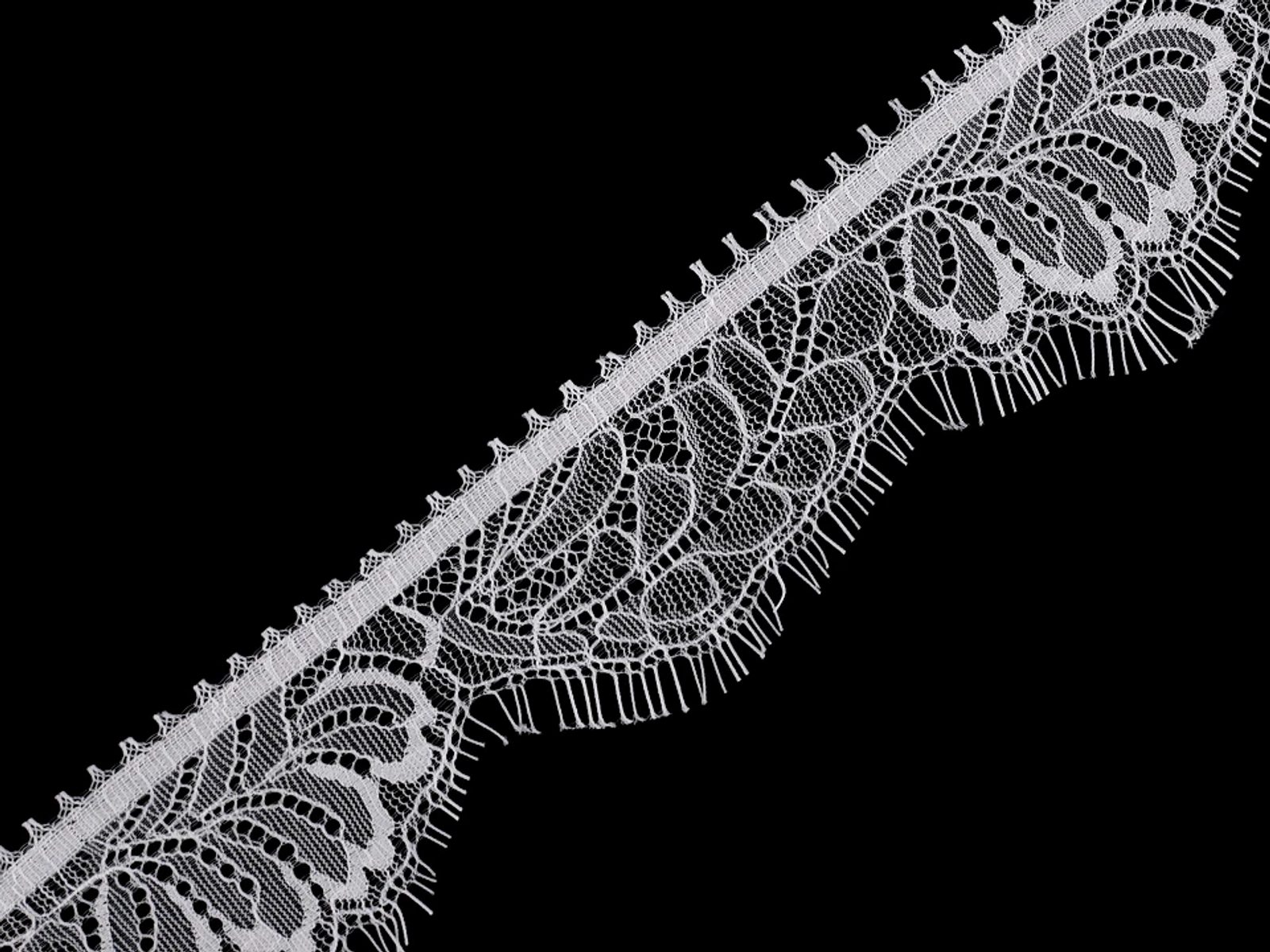 Jemná francouzská krajka vynikne jako ozdobné lemování. Můžete ji našít na halenky, spodní prádlo, kalhoty, společenské a svatební šaty i sukně. Lze ji použít na zakončení rukávu.