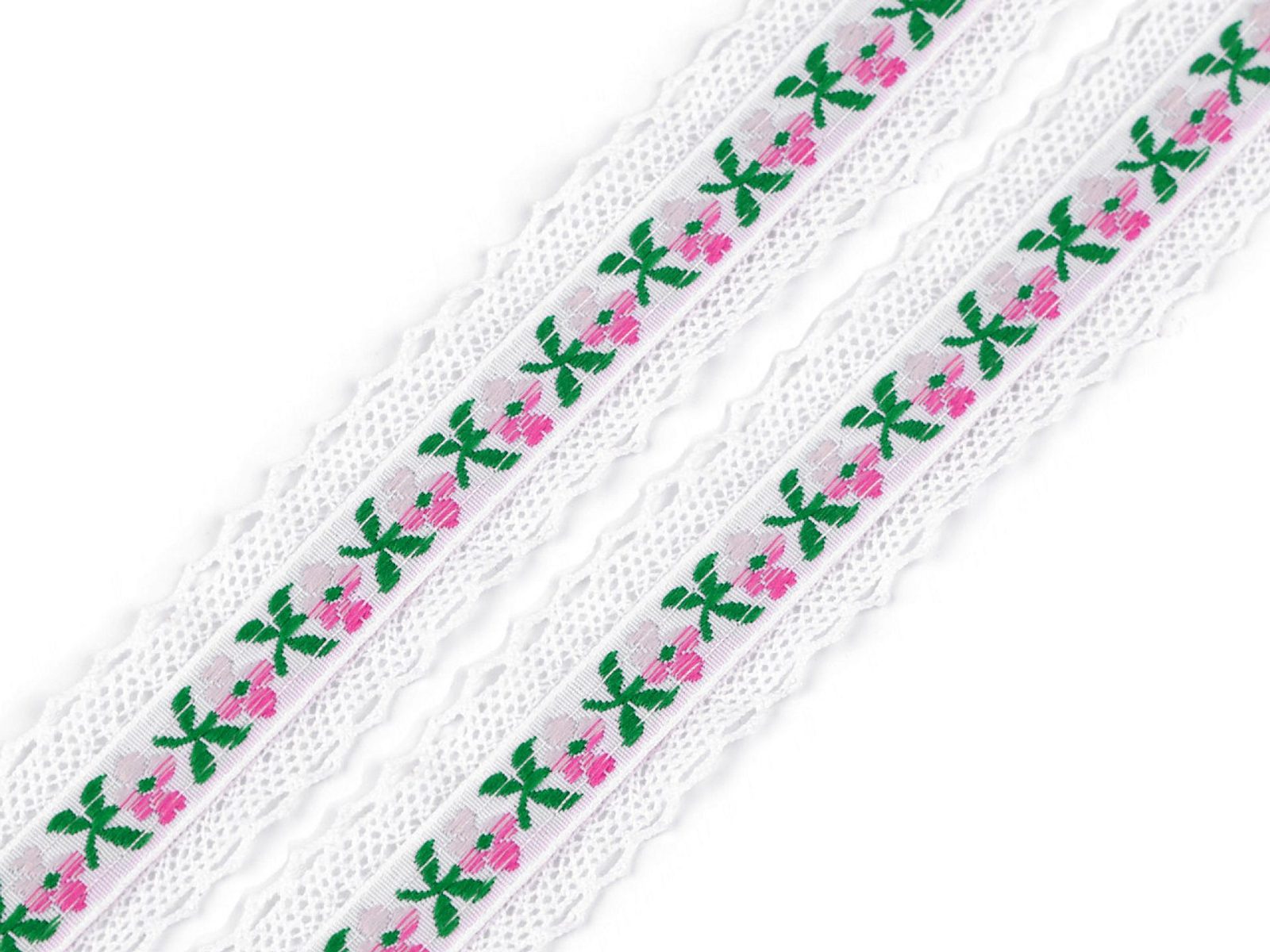 Bavlněnou krajku zdobí středový pruh ze vzorovky. Krajka je měkká a příjemná na dotek. Ozdobíte s ní oděvy i doplňky.