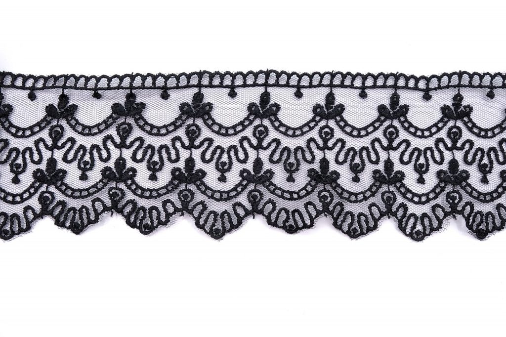 Krajka šifonová vyšívaná 5233 šíře 6 cm černá METRÁŽ