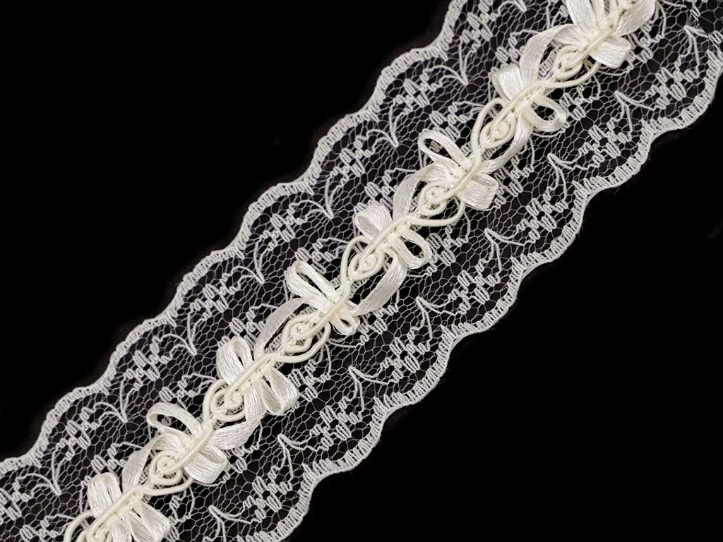 Krajka jako stvořená pro ušití dráždivých podvazků. Je tužší, velmi dobře drží tvar a svou šířkou čtyři a půl centimetru nabízí široké možnosti použití, např. pro luxusní noční a spodní prádlo.