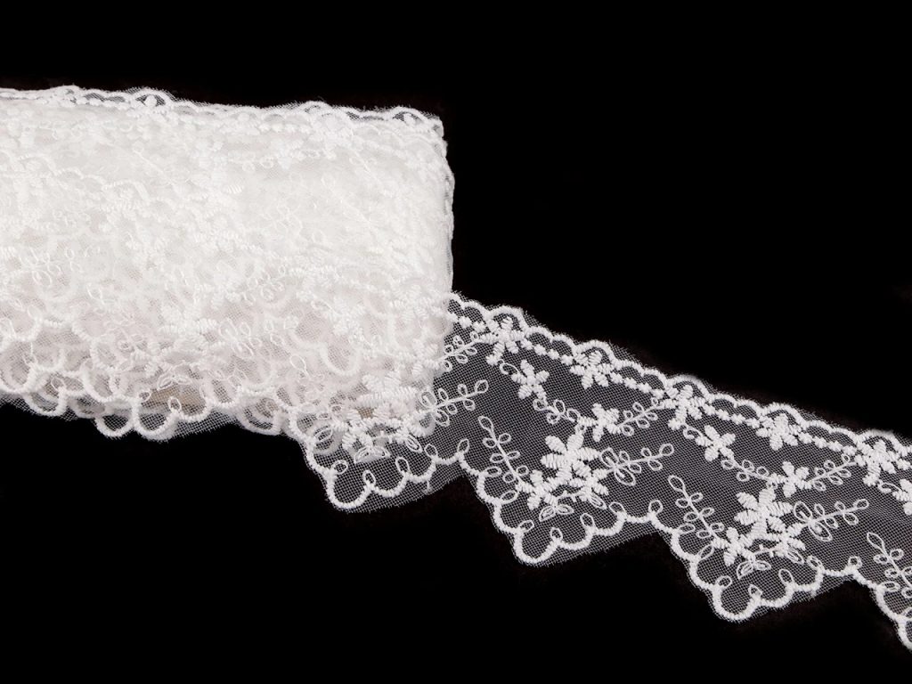Vyšívaná krajka na monofilu šíře 65 mm METRÁŽ