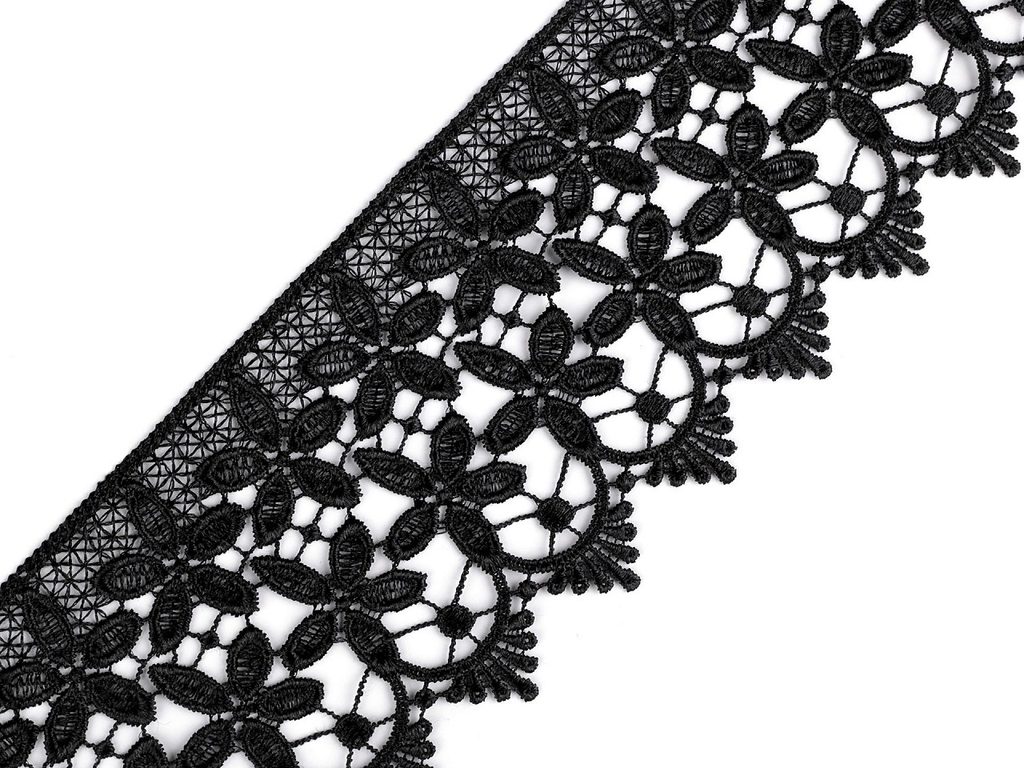 Vzdušnou krajku zdobí květinové motivy. Vyniká precizním zpracováním. Je vhodná k našití na šaty, halenky, saka apod.