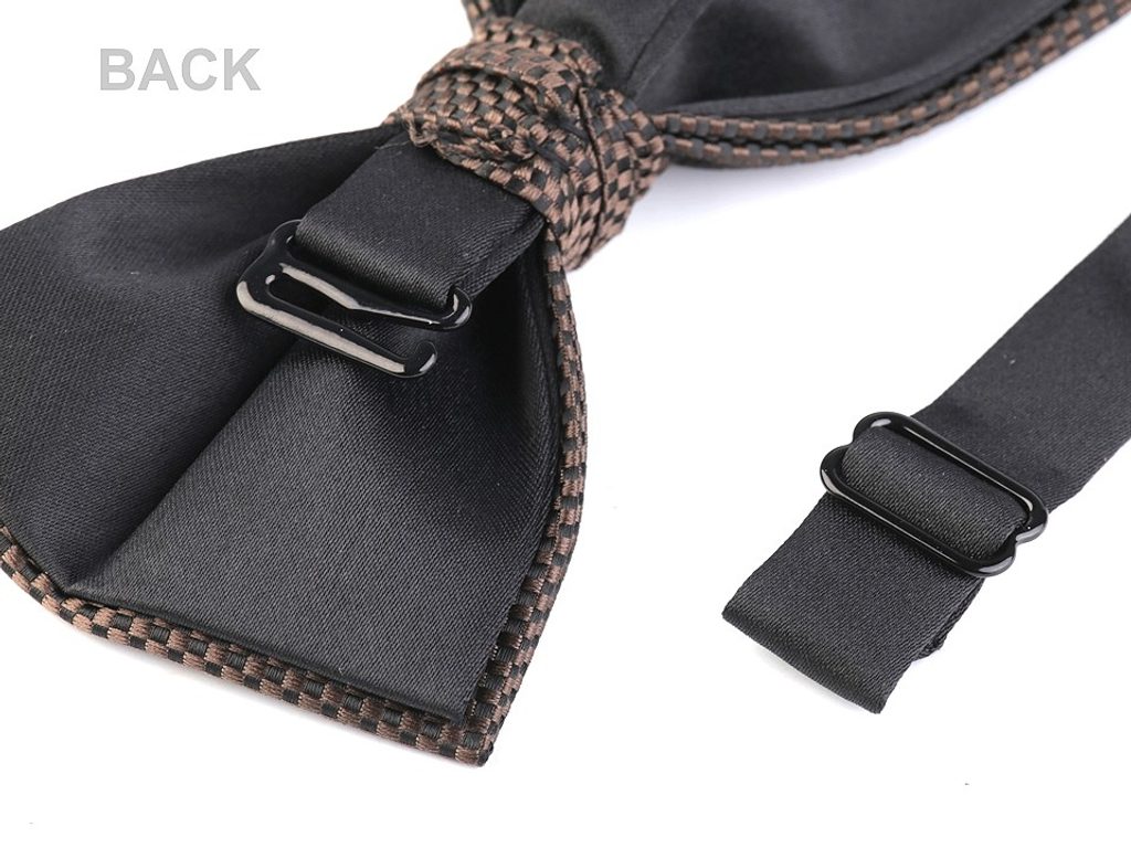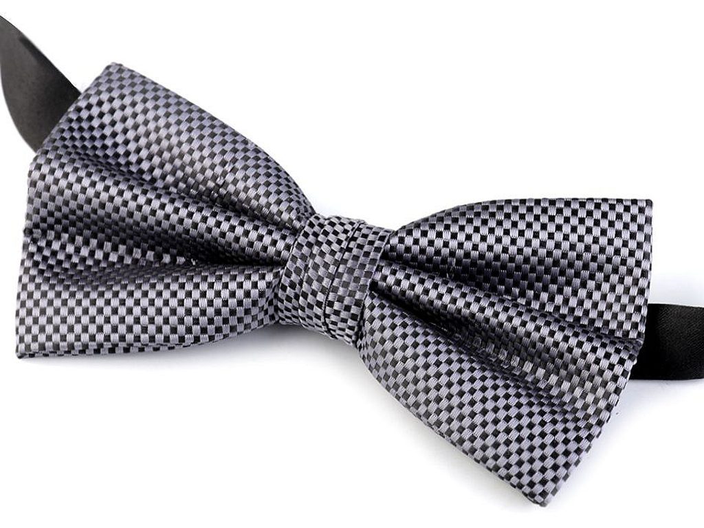Jednobarevný pánský motýlek vyniká svým kvalitním zpracováním. Tkanina má jemný kostičkovaný vzor a lesk, díky kterému se může nosit jak do společnosti, tak např. do kanceláře. Je vhodným doplňkem na společenskou událost, na formální jednání, je i pro muže, kteří preferují styl pravého gentlemana. Motýlek je složený ze dvou - spodní je černý, díky němu je tvar pevně vyztužený, horní je se vzorem. Motýlek je vázaný, padne všem, stačí jen utáhnout nastavitelný pásek kolem krku. Nejdelší délka pásku okolo krku je 50 cm. Zapínání je kovové, pásek je ze saténu. Krabička pro uložení motýlka je široká 7,5 cm, dlouhá je 14 cm. Její výška je 3 cm. Víko má průhledné, hodí se pro vystavení motýlka v obchodě.