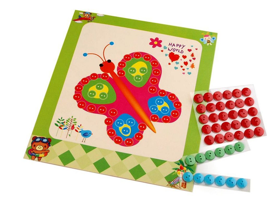 Veselý barevný obrázek s knoflíky je skvělou didaktickou pomůckou na procvičení jemné motoriky a barev dětí.Knoflíky jsou samolepicí, děti mají za úkol přilepit je na vyznačené místo na obrázku. Díky různým barvám knoflíků si procvičí i samotné barvy. Knoflíky jsou nalepené na plastovém archu, ze kterého jdou snadno sundat.